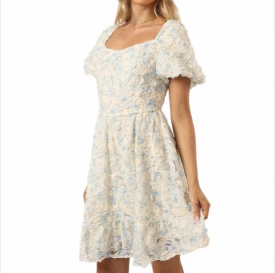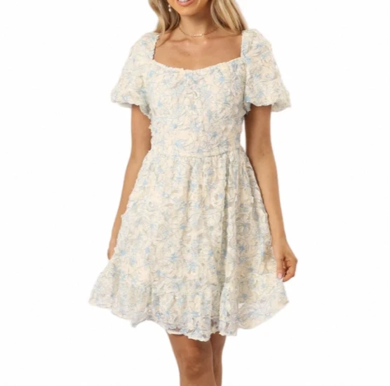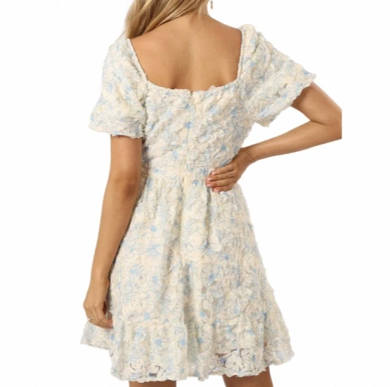 Strapless Square Neck Princess Skirt with Sweet Patchwork Retro Style Short Jumpsuit for Spring Summer New Bubble Sleeve Design